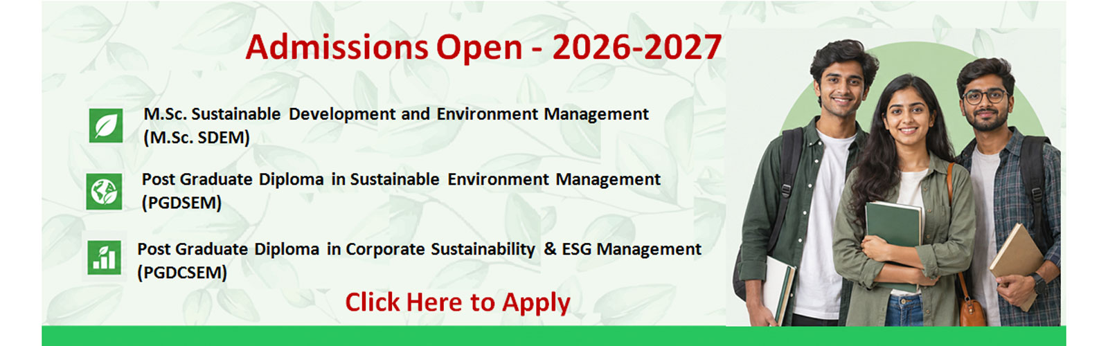 Post Graduate Diploma in Sustainable Environment Management (PGDSEM) DOWNLOAD FLYER